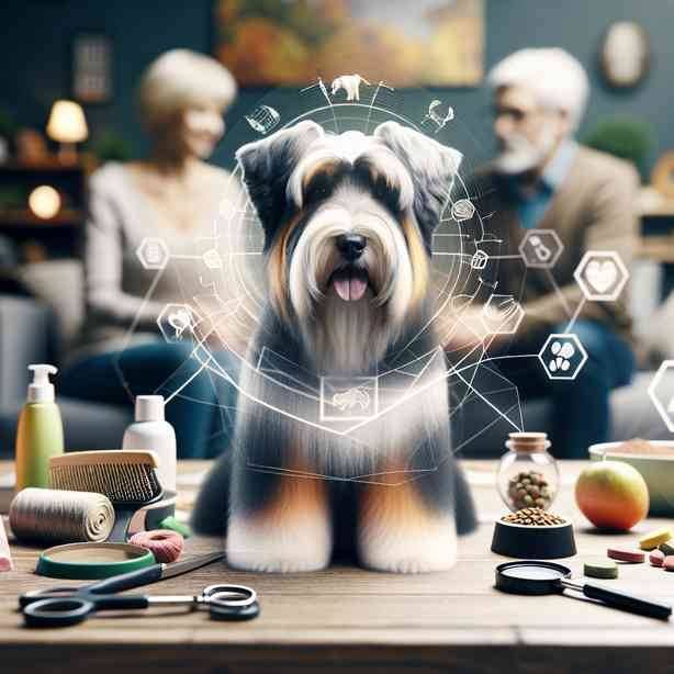비바 테리어의 긴 털은 청결 유지가 매우 중요합니다. 매일 빗질로 털의 엉킴을 방지하고, 2~3주에 한 번 정도 미지근한 물로 목욕을 시켜주는 것이 권장됩니다.