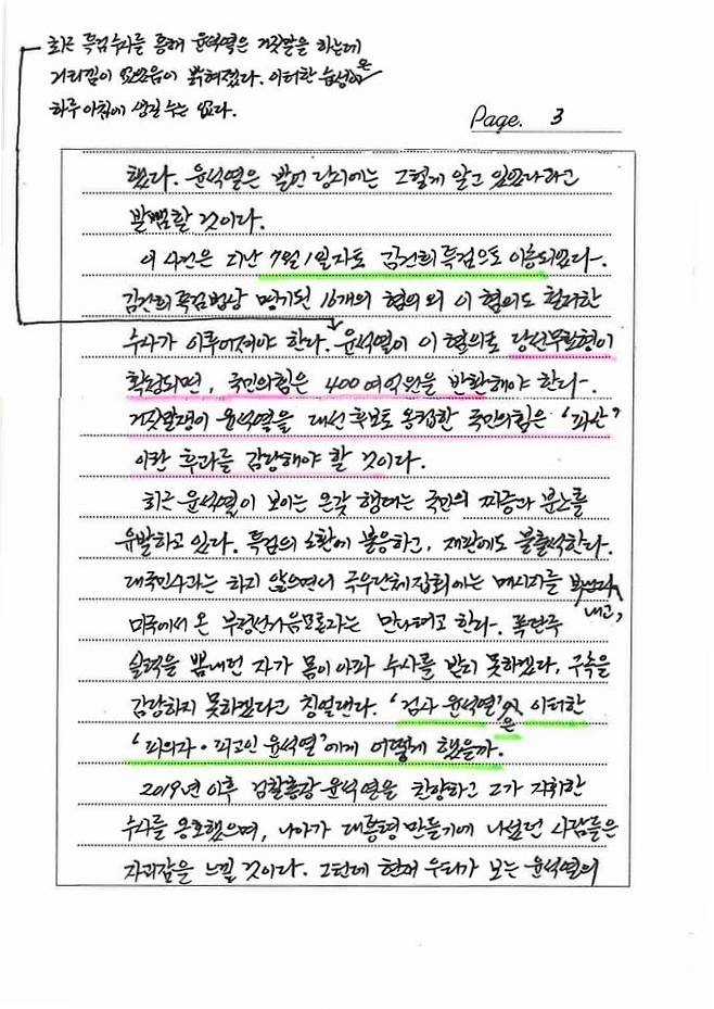 | ▲ 조국 옥중편지3 조국 대표의 옥중편지 3페이지다. |