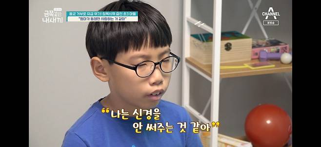[TV리포트=이지민 기자] 9일 채널A '요즘 육아 - 금쪽같은 내새끼'에서는 '유급 위기! 등교를 거부하며 침묵시위 중인 초3 아들'의 이야기가 공개됐다.