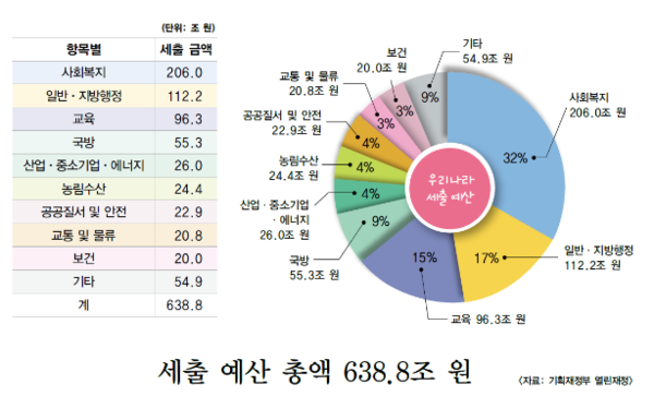 한해 예산을 어디 썼는지를 설명하는 그래픽이다.