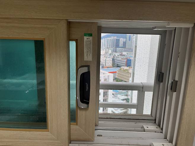 요즘 창들은 대부분 외창과 내장, 이렇게 이중 구조로 되어 있습니다. 먼저 방충망이 설치된 곳의 외창을 반만 열어 주세요.