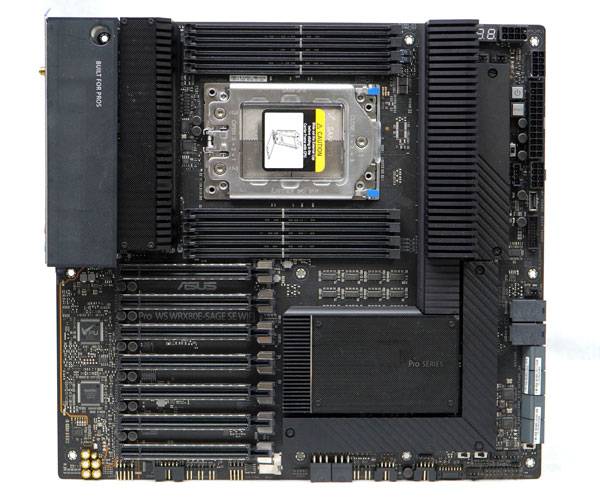 라이젠 스레드리퍼 프로 WX 시리즈를 지원하는 메인보드 중 하나인 ASUS Pro WS WRX80E-SAGE SE WIFI는 Extended ATX(EEB) 폼 팩터의 워크스테이션 모델로 16페이즈 전원부를 비롯해 고성능 그래픽 카드용 PCIe 4.0 x16 슬롯 7개와 인텔 듀얼 10G 이더넷, 인텔 Wi-Fi 6 AX200 모듈, 듀얼 USB 3.2 Gen2 Type-C 포트, 3개의 M.2 PCIe 4.0 슬롯과 2개의 U.2 슬롯, 최대 2TB의 8채널 메모리 및 ECC 메모리를 지원한다.