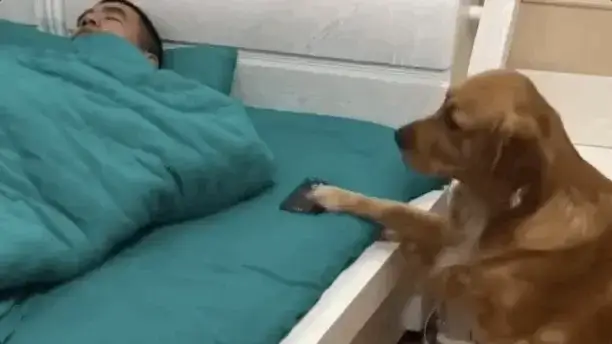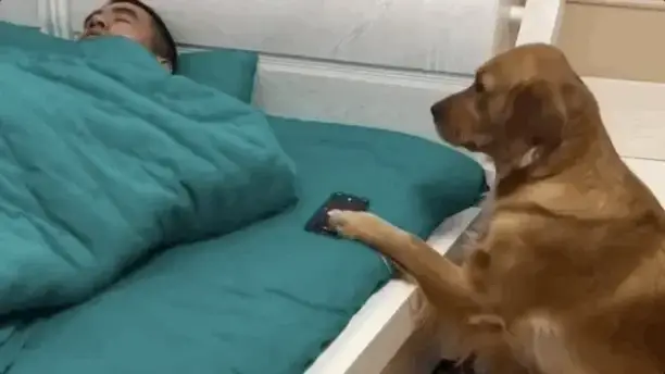 어떤 골든 리트리버는 주인에게 눈을 뜨는 기회조차 주지 않을 정도로 지나치게 행동합니다!