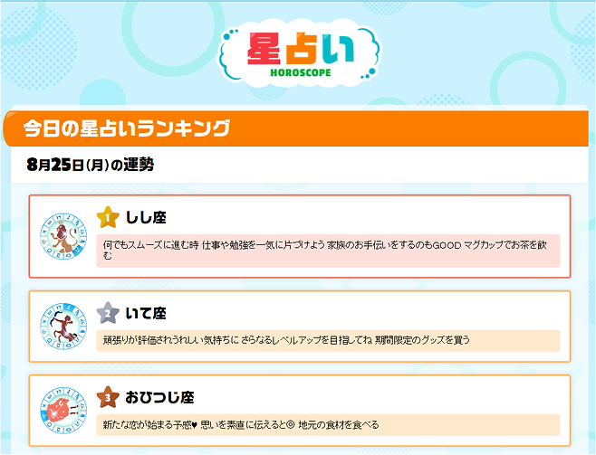 오하아사는 단순한 아침 방송 프로그램을 넘어, 하루를 시작하는 이들에게 생활 팁과 함께 간단한 점성술 정보를 제공합니다. 특히 별자리 운세 코너는 12개의 별자리를 매일 순위별로 정리해주어, 많은 사람들이 아침마다 확인하는 루틴으로 자리잡았습니다.