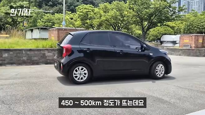 그렇게 가득 채웠을 때 총 주행가능거리는 450~500km 정도 뜨는데요. 한 500km 정도를 4만 원에서 5만 원 정도면 주행할 수 있는 거죠.
