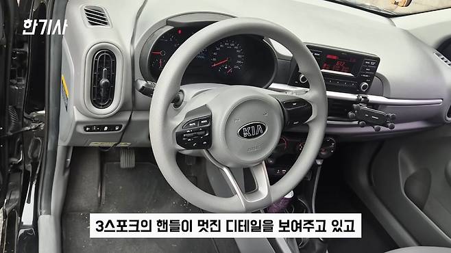 그리고 저는 실내 디자인도 진짜 마음에 드는데요. 일단은 회색 시트하고 회색 트림이 전체적으로 밝은 분위기를 만들어주고 통일감이 있어요. 그리고 무엇보다 계기판이 2세대 모닝에 비해서 3세대 모닝이 좀 더 깔끔한 것 같습니다. 실내 색상이 회색인 건 올드하다기보다 오히려 레트로 하다고 생각해요. MZ세대는 자기만의 개성을 뽐내기 바쁘잖아요. 저는 레트로함으로 승부를 보려고 합니다. 수동 변속기도 너무 예쁘죠.