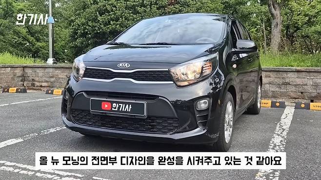 전면부 보시게 됐을 때 굉장히 날렵해진 헤드램프의 존재감도 굉장히 확실하고요. 헤드램프와 이어진 호랑이코 형태의 메탈 라디에이터 그릴과 더불어서 더욱 과감해진 하단부의 범퍼 디자인이 올 뉴 모닝의 전면부 디자인을 완성시켜주고 있는 것 같아요.