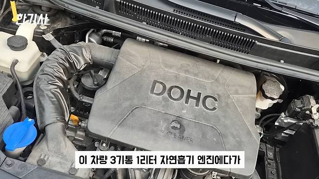 이 차량 3기통 1.0L 자연흡기 엔진에다가 76마력에 9.7토크거든요. 조금 부족한 출력이긴 하지만 저의 기가 막힌 손놀림으로 RPM을 재빠르게 변속할 수 있기 때문에 조금이나마 출력의 아쉬움을 상쇄시킬 수가 있는 거죠.