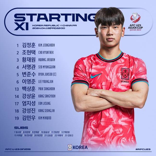 [인터풋볼] 박지원 기자= 한중전 선발 명단이 공개됐다.