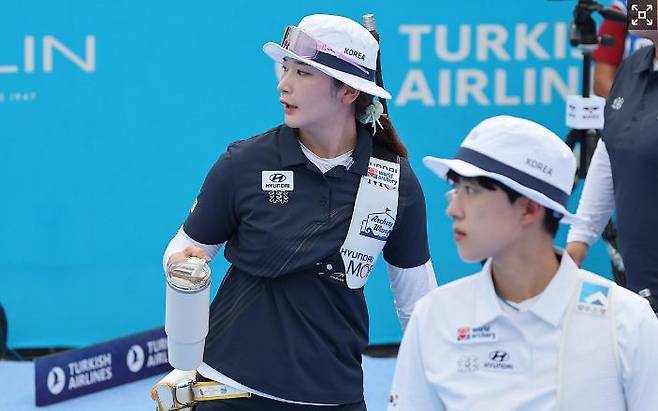 결승의 첫 화살부터 둘은 29-29. 한 치의 균열도 허락하지 않는 팽팽함이었다. 그러나 2세트에서 강채영이 29점을 묶어 2포인트를 챙기는 순간, 흐름은 살짝 기울었다. 3세트 29-29, 4세트는 두 사람 모두 만점(30-30). 스코어는 5-3, 리드는 한 번도 넘어가지 않았다.