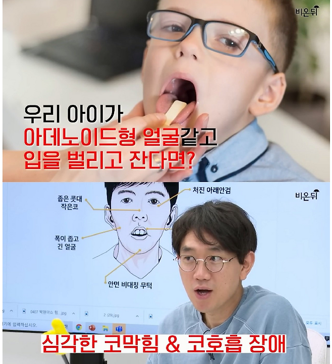 → 입으로 숨 쉬는 습관이 지속되면 턱이 뒤로 밀리며 얼굴이 길어지고,→ 치열이 비뚤어지거나 턱관절 문제가 생기기도 합니다.