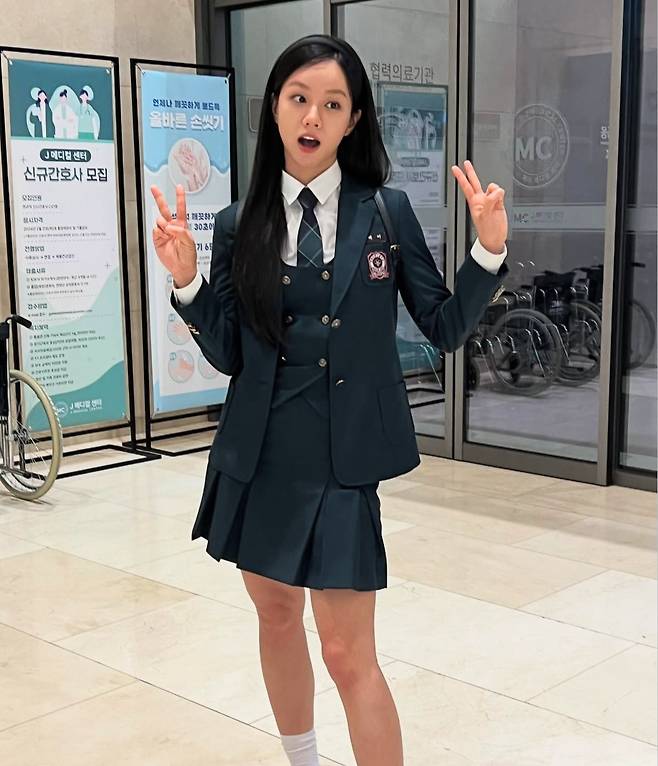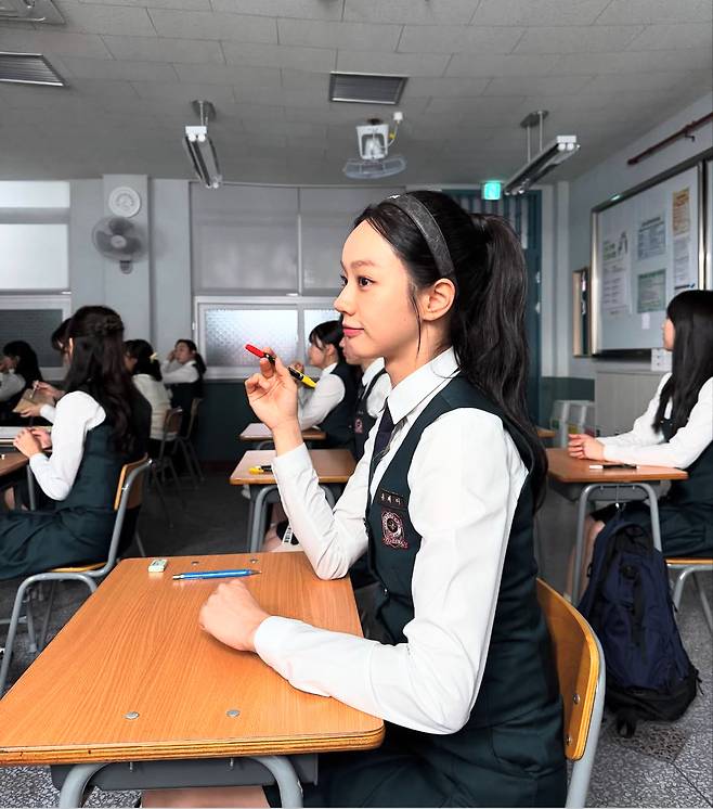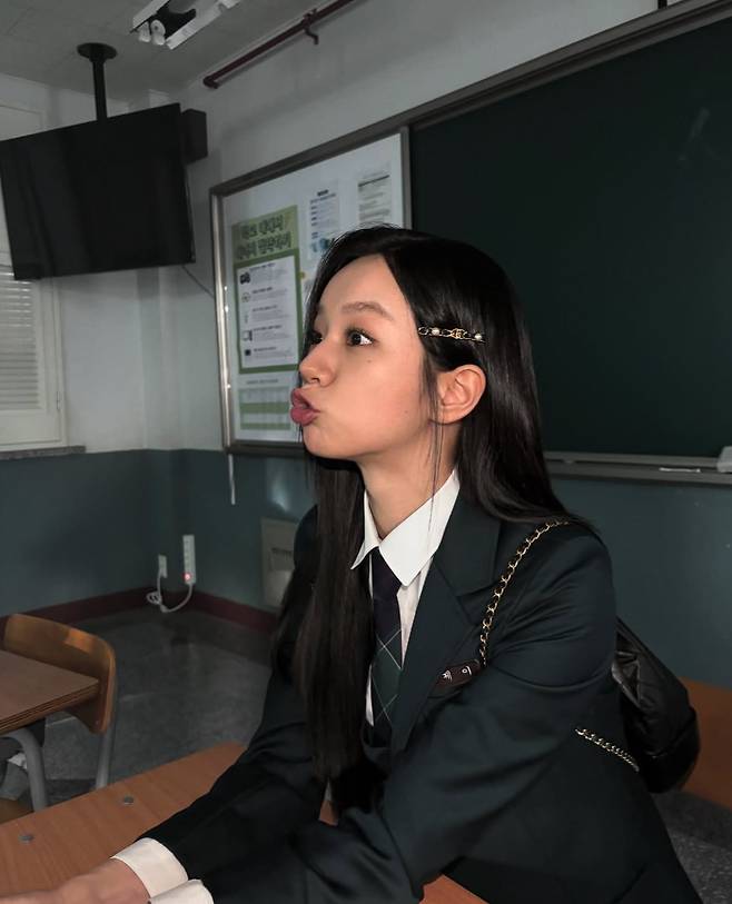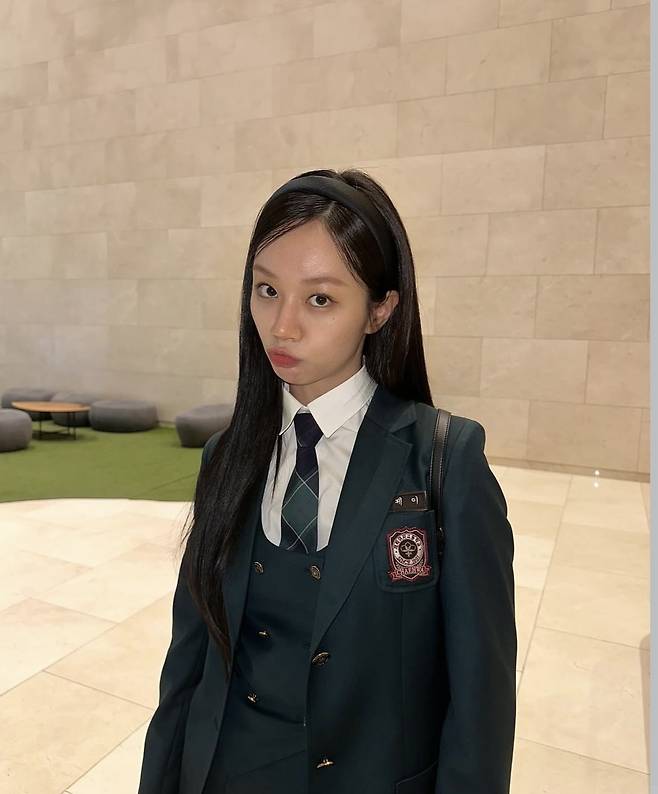 교복을 입은 혜리는 가방 선택도 남달랐는데요,