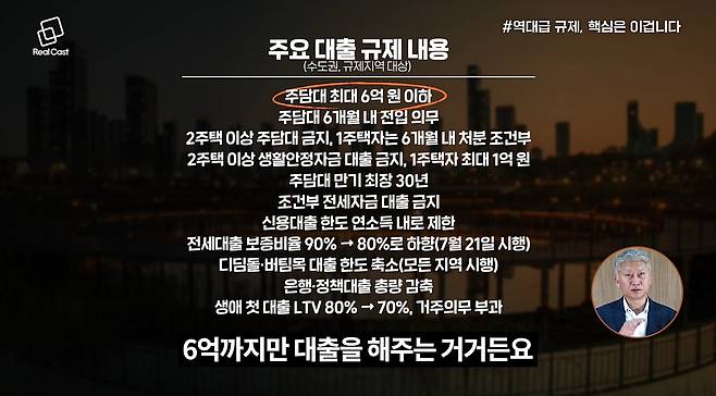 최근 발표된 규제의 가장 강력한 요소는 대출 가능 금액을 ‘6억 원’으로 제한한 것입니다. 이는 기존의 주택 가격에 따른 제한이 아니라, 아예 빌릴 수 있는 금액에 상한을 둔 방식으로, 사실상 대출 구조 자체를 바꿔버린 셈입니다.