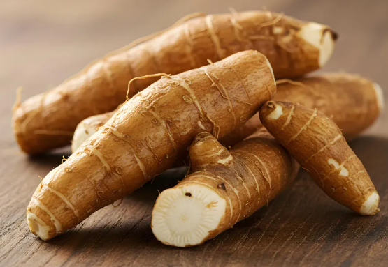 1.천마는 껍질을 벗기고 잘게 썬 뒤, 엷은 식촛물에 살짝 담갔다가 헹궈 물기를 제거합니다.