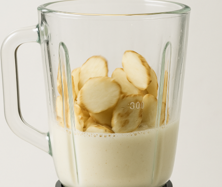 4.믹서에 천마, 물 50ml, 소금 1.5g을 넣고 곱게 간 뒤, 밀가루를 넣어 반죽을 만듭니다.