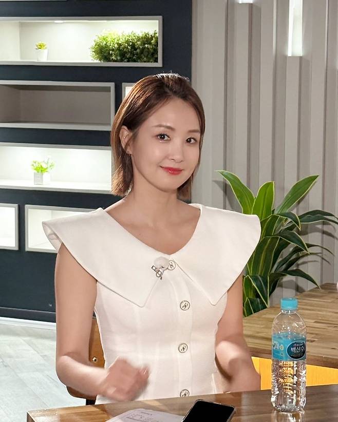 “소심버전 사과머리 어때요?”라는 재치 있는 멘트와 함께 공개된 오정연의 인스타그램 사진이 눈길을 끈다. 방송 촬영장으로 보이는 배경 속, 단정하게 빛나는 그녀의 룩은 단아하면서도 섬세한 디테일로 시선을 사로잡았다. 특히 주목할 만한 포인트는 단연 ‘구조적인 칼라 원피스’다.