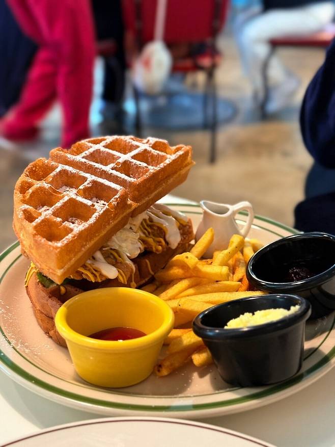생긴것과 다르게 와플이 먹기불편하지않게 폭신해서 그래도 큰불편함없이 잘먹었습니다.