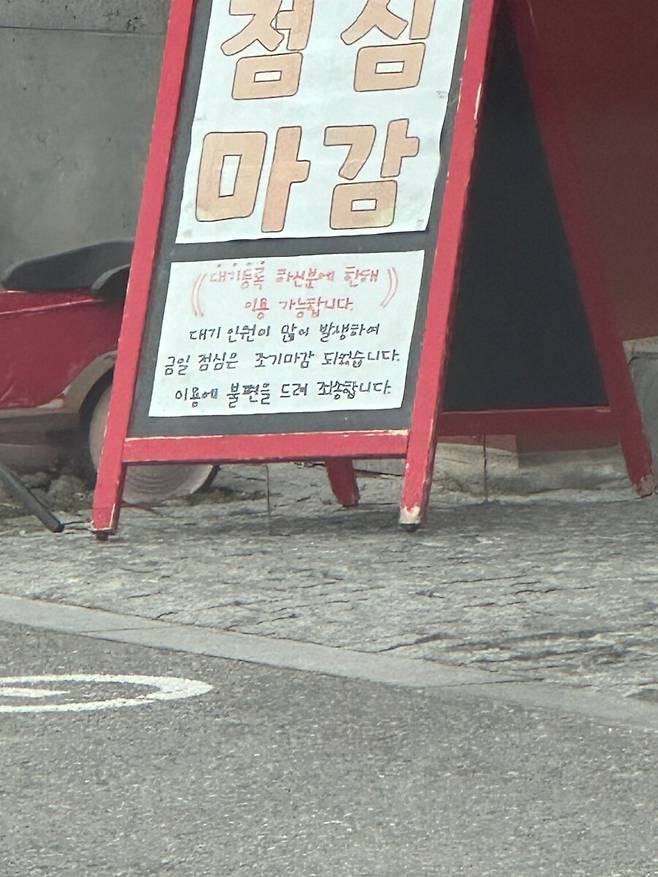 저희가 예약신청 하자 잠시후 직원분이 입간판을 하나 갖고오시는데..
