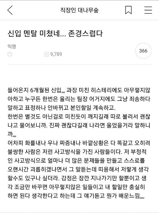 존경스럽다는 신입사원의 멘탈