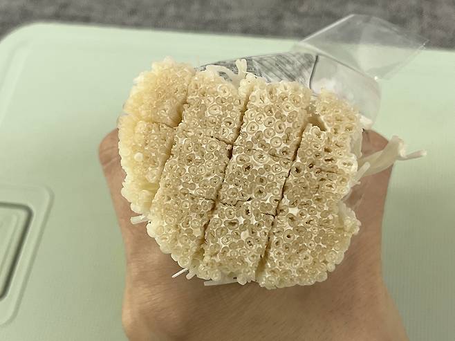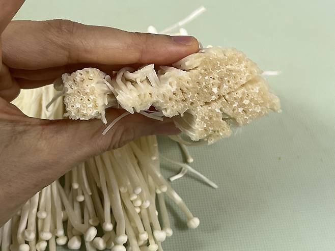 이렇게 칼집을 넣으면 팽이버섯을 더 쉽게 분리할 수 있습니다.