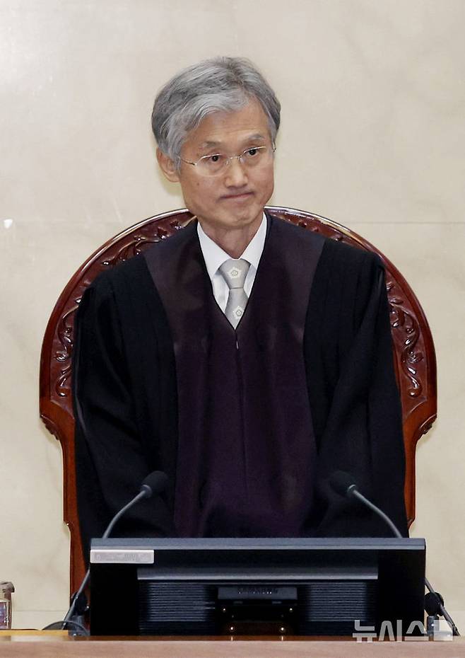[서울=뉴시스] 김진아 기자 = 조희대 대법원장이 20일 서울 서초구 대법원에서 수면제를 먹여 성폭행을 저지르려고 했으나 미수에 그쳤더라도 강간치상죄로 처벌할 수 있는지 여부에 대한 전원합의체 선고를 위해 참석하고 있다.
