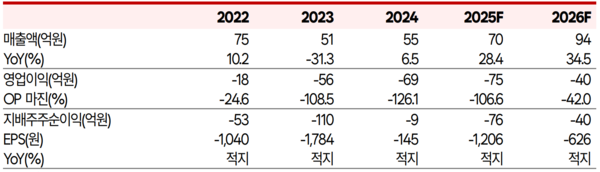 로봇부품 경쟁력 확보를 위한 경상연구개발비 부담은 크지만 손익분기점(BEP)만큼의 매출이 발생하지 않으면서 턴어라운드가 쉽지 않은 상황이다. 2022년부터 2025년 3분기 말까지의 누적 영업손실은 203억원에 달한다. 에스비비테크 측은 올해도 연간 40억원의 영업손실이 발생할 것으로 전망했다.
