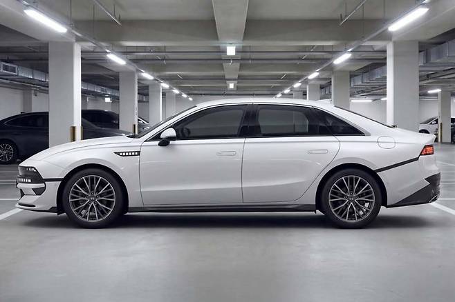 측면 역시 파라메트릭 픽셀 패턴 디자인을 적용한 측면 방향지시등을 적용했다. 현대차는 곧 출시 예정인 신형 그랜저에도 측면 방향지시등 위치를 측면 펜더 위치로 이동해 새로운 분위기를 연출할 예정이다.