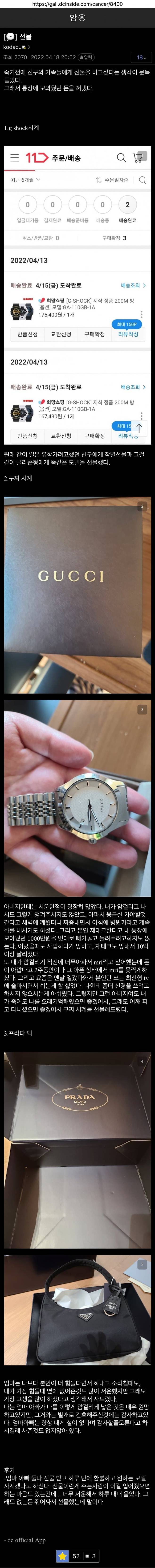 사망 한달전 암환자가 주변에 선물 돌림