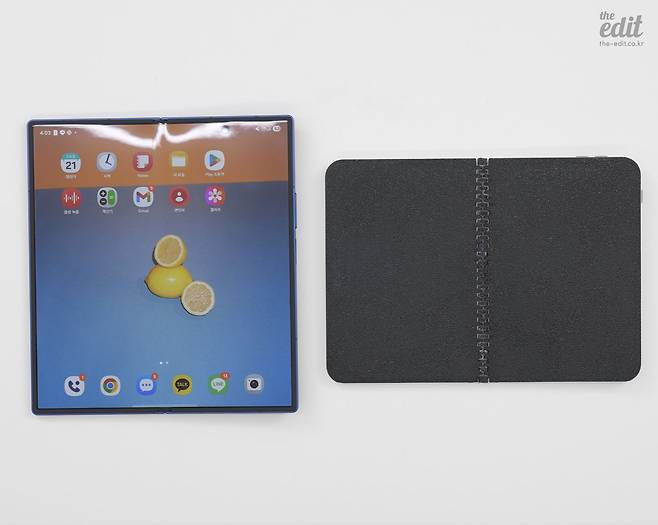 이렇게 가로를 길게 만들면 휴대가 불편하지 않겠느냐는 생각도 들기 마련인데요. 실제로 들고 다녀보니 제가 현재 개인용 폰으로 사용하는 아이폰 16 프로 맥스보다 폭이 더 넓음에도 한 손에 사용하기에는 더 편했습니다. 사실 큰 스마트폰을 한 손으로 사용하기 어렵게 만드는 것은 폭보다는 높이의 문제인 경우가 더 많기 때문이죠.