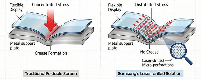 주름 없는 폴더블 디스플레이의 원리를 간단히 설명한 그림.