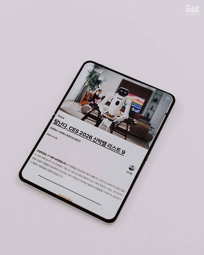 사실 이렇게 접은 상태에서 가로 비율이 더 넓은 폴더블 스마트폰이 처음은 아닙니다. 당장 구글이 2023년에 내놓았던 첫 픽셀 폴드도 가로가 더 넓은 비율이었거든요. 하지만 아이폰 폴드는 이 가로 비율을 더 늘렸습니다.
