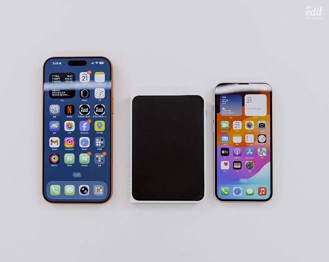 아이폰 17 프로 맥스(왼쪽), 아이폰 13 미니(오른쪽)와의 크기 비교.