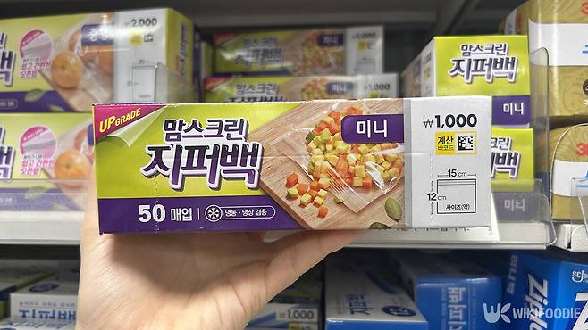 작은 식재료나 소품 정리에 유용한 미니 사이즈 지퍼백이다. 3일 기준 다이소 주방용품 카테고리에서 12위에 올랐으며, 크기는 약 12x15cm다. 1000원에 50매 구성으로 가격 대비 효율이 높다.