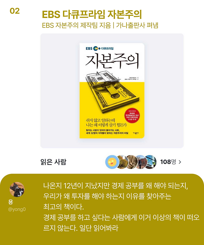 위에 책들 중에서 ‘EBS 다큐프라임 자본주의’ 책을 처음 읽어보는 거를 추천드립니다.