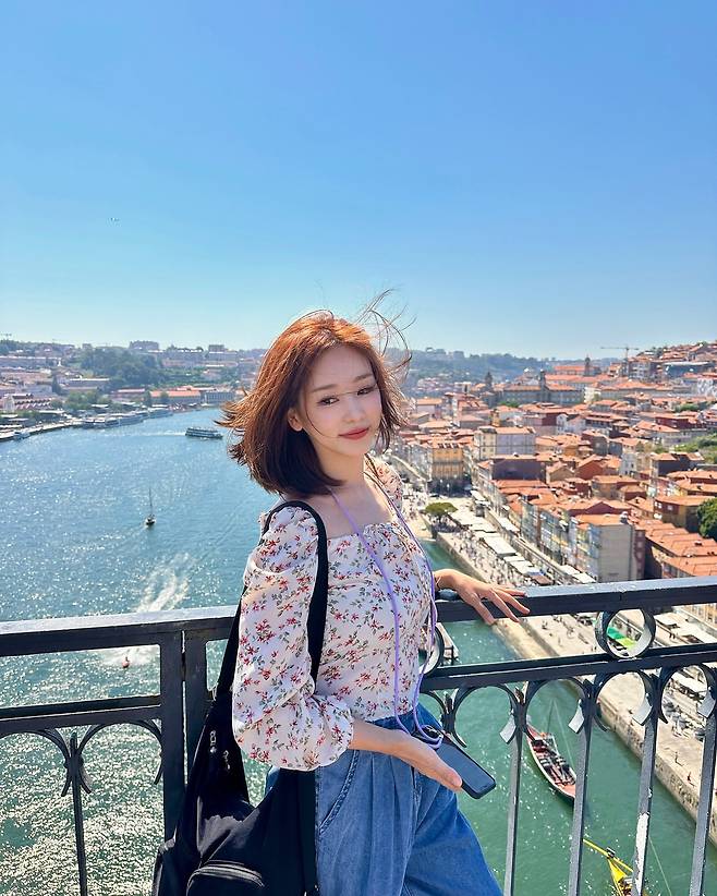 첫 번째 사진에서는 포르투의 강변을 배경으로 플라워 패턴 블라우스와 데님 팬츠로 캐주얼한 스타일을 연출했다4. 자연스럽게 흩날리는 머리와 미니멀한 액세서리, 백팩이 여행지의 자유로운 분위기를 강조하며, 실용적이면서도 여성스러운 일상 패션을 완성했다.