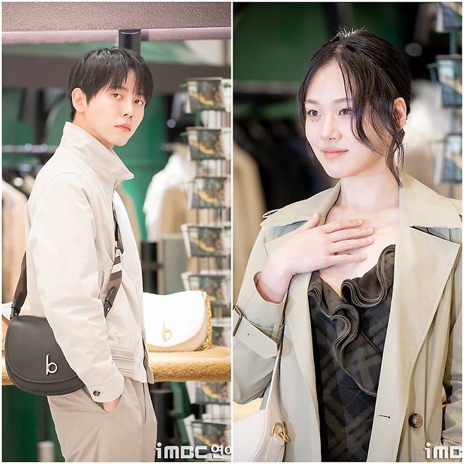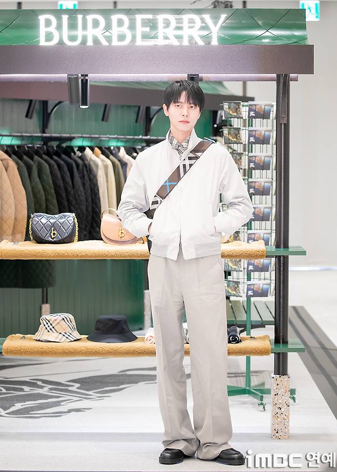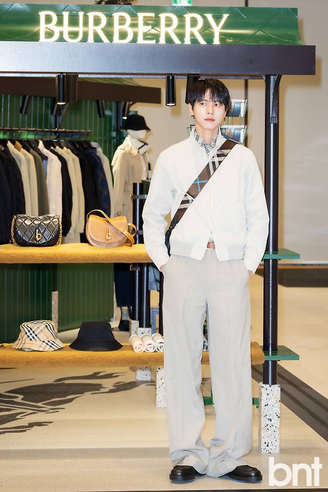 베이지 팬츠의 조합이 고급스러우면서도 깨끗한 인상을 주었으며