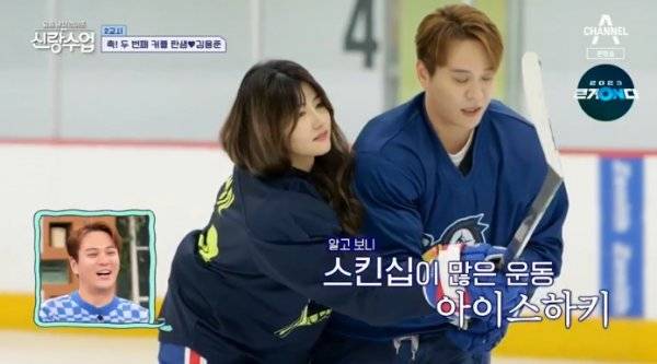 이날 김용준은 장영란의 소개로 아이스하키 감독 ‘안 감독’을 만나러 빙상장을 찾았다. 알고보니 ‘안 감독’은 남성이 아닌 여성. 아이스하키 국가대표 출신 감독 안근영이었다. 배우 못지않은 비주얼에 김용준은 수줍게 미소 지었고 부끄러움에 몸 둘 바 몰랐다. 그러면서도 “타다가 내가 넘어지면 일으켜 달라”고 어필하더니 쉴 새 없이 넘어져 눈길을 끌었다.