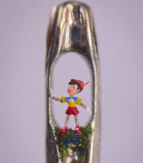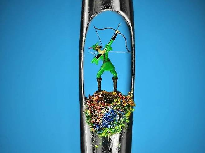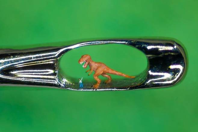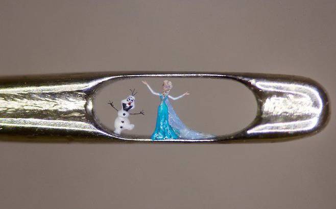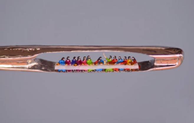 현미경으로만 볼 수 있는 바늘 구멍 안 초극세 조각