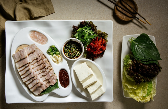 수육은 잡내 없이 부드럽고, 가자미식해와 찰떡 궁합