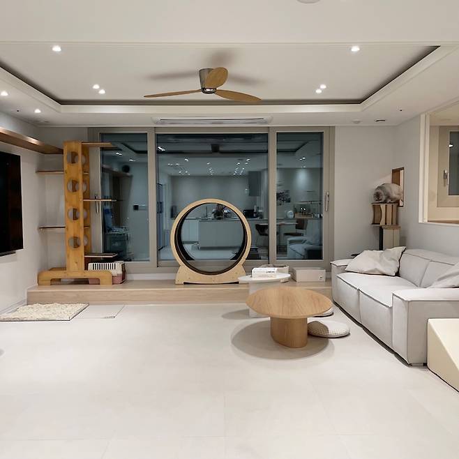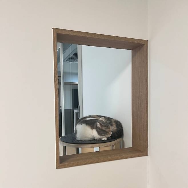 저희는 고양이를 위한 캣테리어도 충분히 중요하다고 생각했기 때문에 거실과 서재방 사이에 작은 구멍을 내서 고양이들의 동선이 끊기지 않도록 만들어 주었어요.