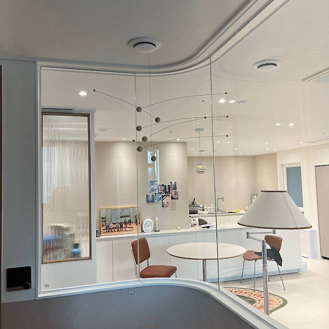 서재에서 바라본 거실이에요. 한쪽 벽면이 전부 유리라 자칫 밋밋해 보일 수 있는데 그 점을 모빌이 해결해 주었어요. 인테리어 요소적으로 어디에 두어도 찰떡같이 감성적으로 만들어 주어서 매우 추천하는 모빌입니다ㅎㅎ