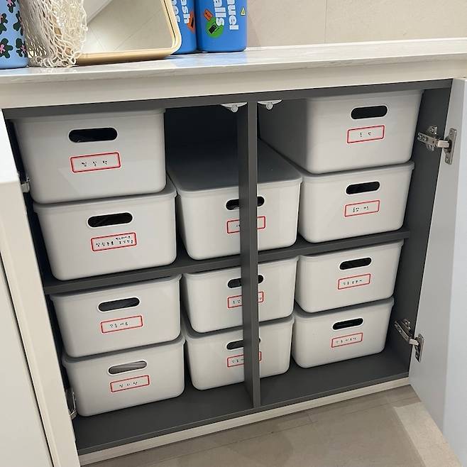 꽤 깊고 넓은 수납공간이 주방 아일랜드 식탁 밑까지 쭉 연결되어 있어서 지금은 오히려 공간이 너무 남아요^^
