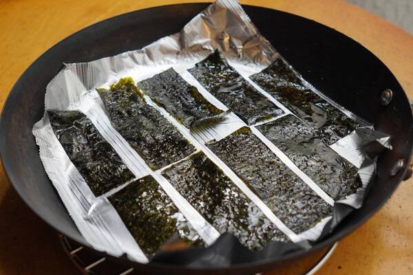 김은 바삭하게 구운 후 한입 크기로 자른다