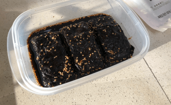 김에 양념장을 붓고 하루 동안 냉장 숙성시킨다