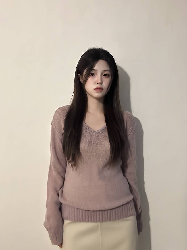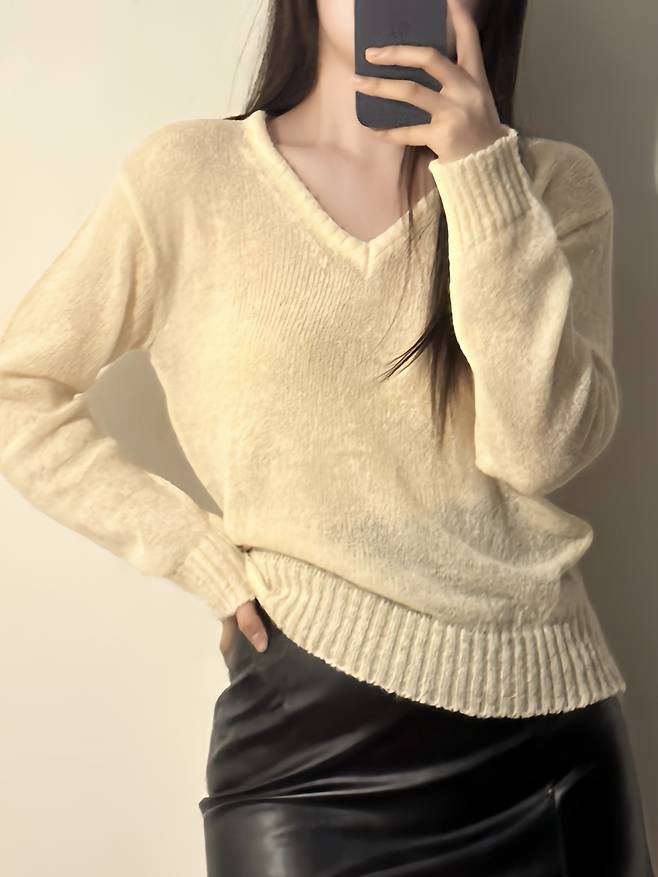 루즈한 핏의 브이넥 니트로 무드 있는 스타일을 연출할 수 있어요