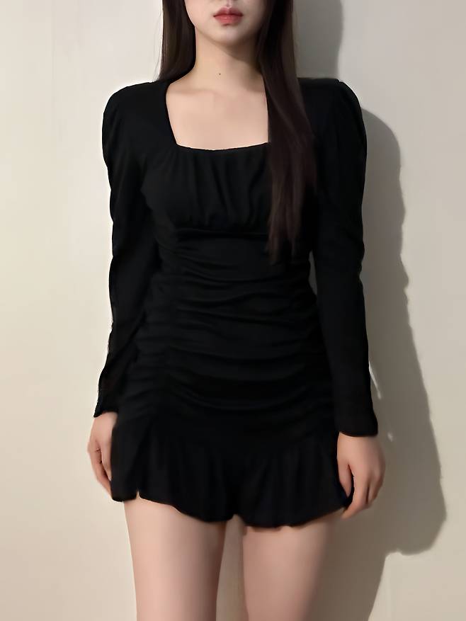 옆라인에 들어간 셔링으로 볼륨감을 살린 미니원피스에요