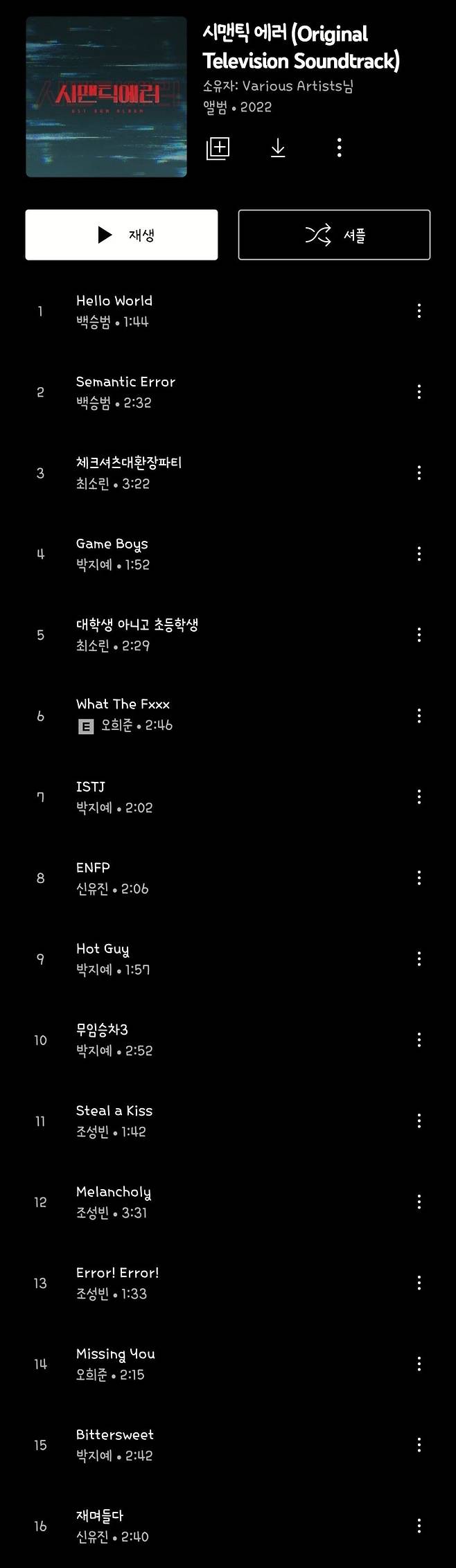 실물앨범이 아니라 조금 아쉽지만😥 드라마속 ost를 전부 씹뜯맛즐 할수있음. 오슷 발매후 티비 예능이나 라디오에서 생각지도 못한 시에러 ost를 듣게 되는 일들이 발생중ㅋㅋㅋ