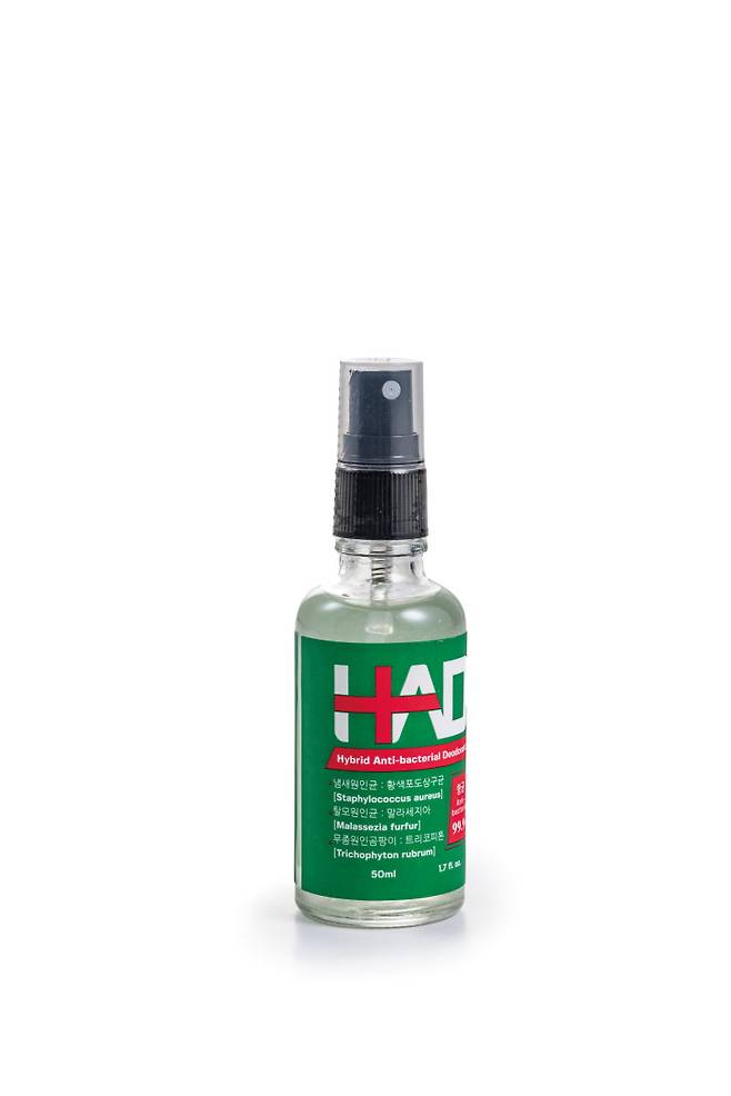 항균제 전문업체인 (주)세이프컴퍼니에서 개발한 살균 탈취제 HAD. 라이딩 후 매번 세탁할 수 없는 신발이나 헬멧, 글러브에 활용할 수 있는 제품이다. 악취를 유발하는 황색포도상구균부터 말라세지아, 트리코피톤 세균까지 HAD를 분사하여 제거함으로써 소취, 항균 효과를 기대할 수 있다. 플라스틱 용기와 에탄올 성분의 화학작용으로 인한 발암물질과 유해물질이 생기는 것을 방지하기 위해 유리 용기를 사용하고 있다.
