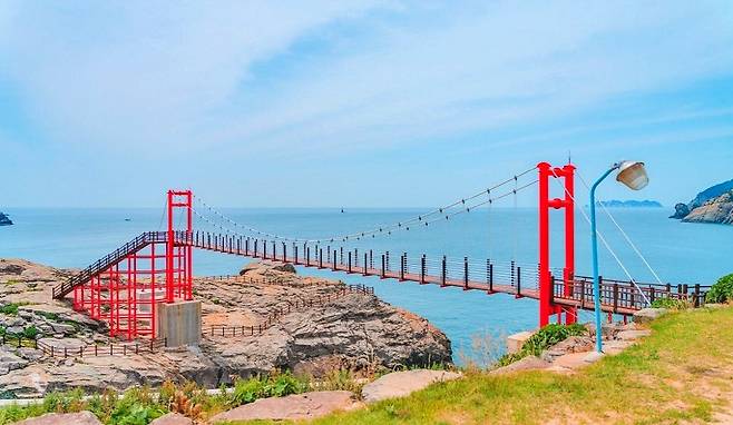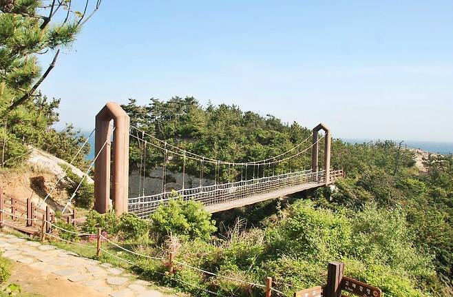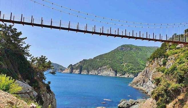 욕지도를 걷다 보면 발걸음이 멈추는 지점이 있다. 섬을 둘러싼 비렁길 끝에서 만나는 욕지도 출렁다리다.
