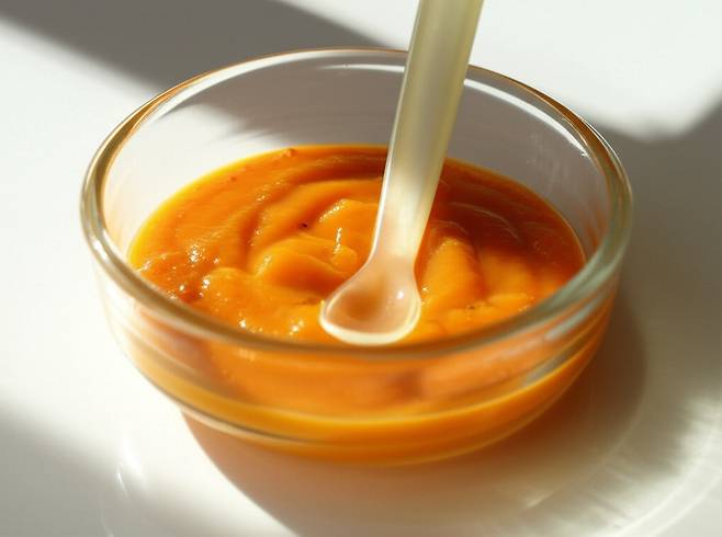 • 3단계 (생후 7~8개월): 5대 영양소를 골고루 갖춘 식단을 구성합니다. 1일 2~3회, 5~6 스푼 정도로 양을 늘리고, 질감도 점차 높여줍니다.